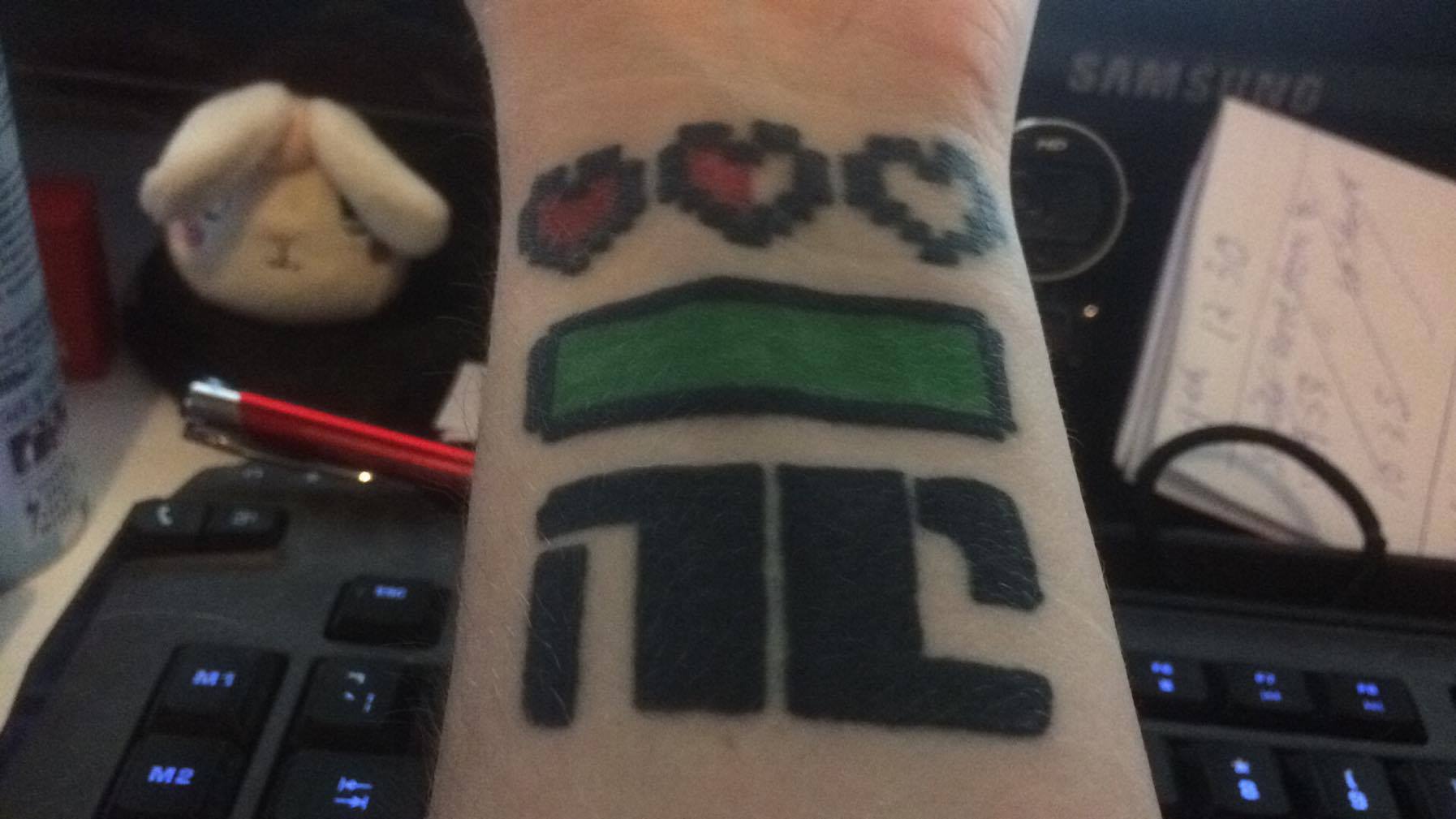 I got three pixel hearts on my left wrist to celebrate making games writing my full time job. I got a My Chemical Romance quote on my right wrist to celebrate three years without a suicide attempt. I got a pixel magic bar on my left wrist to celebrate getting my Adam’s apple reduction surgery. I got the Let’s Play Video Games logo on my right wrist to celebrate going independent as a writer and managing to still thrive. I got the Non Compliant tattoo on my left wrist to celebrate lower surgery and taking pride in my own non traditional femininity. I got Faith’s tattoo from Mirror’s Edge on my left arm to celebrate having the strength to move from one period of my life to a brand new stage.
