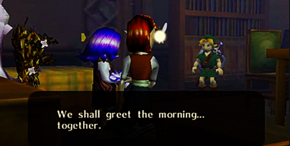 Majora’s Mask’s main villain isn’t something that can be beaten down with a sword, it’s empathy and social understanding. It’s a game about learning to predict the emotional needs of others, understand how their actions lead on from each other, how to fix problems whose solutions are not spelled out, and ultimately understanding the motivations that lead people to the choices they make.