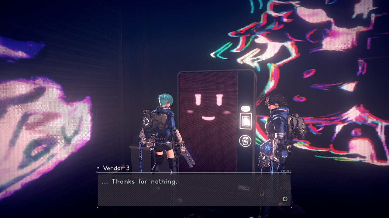 In terms of the game’s visuals, Astral Chain runs at 30FPS, which is rare for Platinum who like to try and keep their games locked at a solid 60FPS. That 30FPS is pretty much rock solid, with a few occasional dips but nothing major. While I would have expected the drop to 30FPS to be more noticeable and detrimental, in practice the game still looks remarkably good thanks to really smart use of blur effects and dramatic visual flair on attacks. Sure, I would have preferred to play this game in 60FPS, but at 30FPS it’s certainly very playable, and thanks to some technical wizardry it’s often not something I remember to think about. The game’s fantastic look is also really helped by its beautiful cel shaded art style, and its creative creature, character, and future tech designs. Everything is just neon enough to really look stunning. The game may not look perfect in screenshots, but in action it really shines.