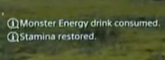 After chugging five cans of Monster, I did notice an increased stamina, but it actually seemed to be detrimental in practice. I seemingly overclocked on stamina, exceeding the upper limits of my stamina bar and gaining temporary extra stamina that had to be used instantly. Make sure you have a plan of what to do in game for the next few hours, because you will have a lot of energy, and you won’t really be in the mood to quietly able or stealth sneak around the countryside. Wait until you have an action heavy segment of the game to chug all your gamer juice.