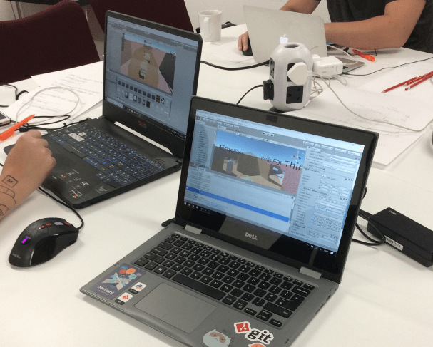 While I didn’t win the game jam, I had a fantastic time. I came away a lot less terrified of Unity as a development tool, and eager to try making things with it again. It was reassuring not only seeing how much of development over the weekend was possible with free and default assets, but also scripts available online for free. The fact that my paired student developers were googling problems, watching tutorials, and copy pasting code in made me a lot less embarrassed that I had been doing the same while teaching myself to make a 2D platformer before the jam began.