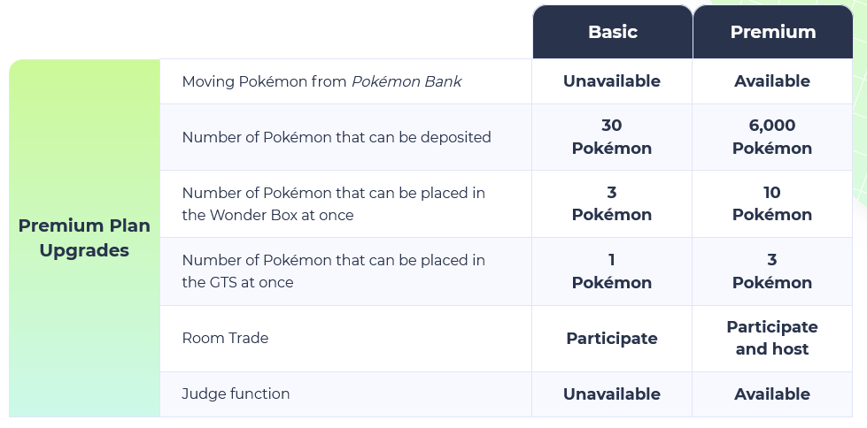 As detailed in the above graph, Pokémon Home will have a free and a paid version, but the free version features a number of limitations which are going to be major issues to a lot of players. While limits on numbers of concurrent GTS trades and Wonder Trades feel like fair features to put behind a paywall, other features very much defeat the reason people wanted an unpaid SKU of Home in the first place.