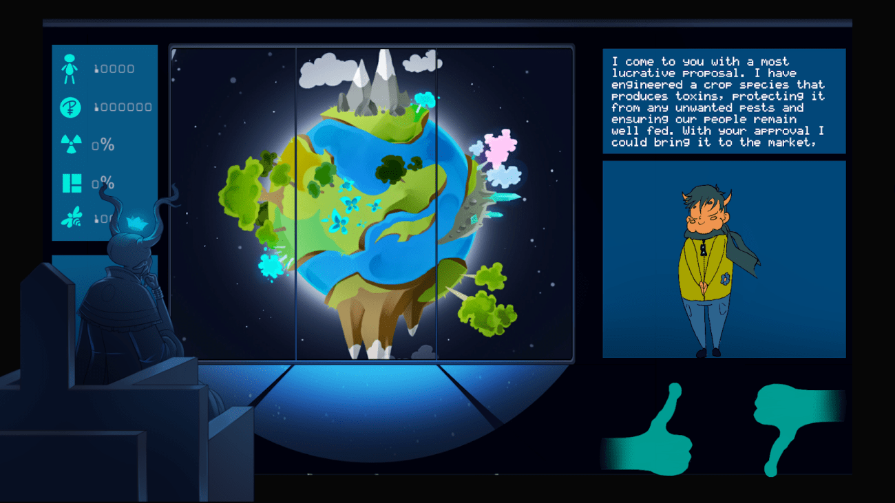 Beyond those, one 2018 game jam title from the event I wanted to highlight was Our Little Planet, which is available now on Android. In it, you play the ruler of an entire planet, making large scale decisions about how your planet should be run, later being graded on the impacts your choices had on the populous.