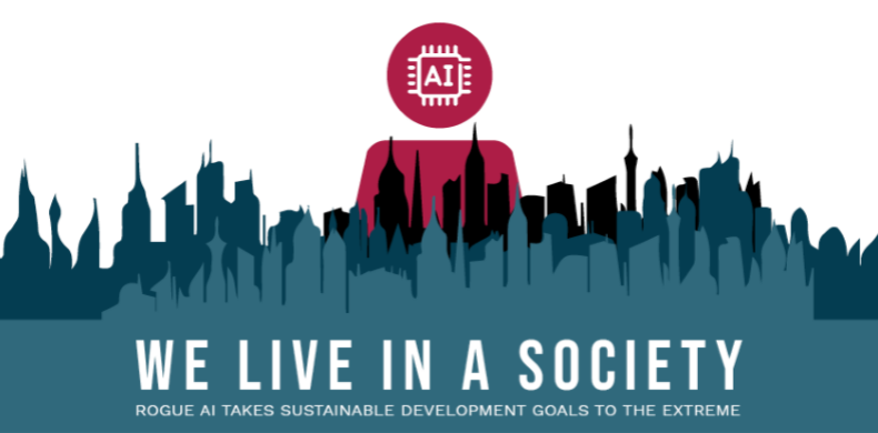 in We live in a Society, players take on the role of an AI, attempting to manage global sustainability goals, such as improving the quality and variety of underwater life, or reducing pollution. The game aims to show how these sustainability aims could be taken to excessive extremes if looked at in isolation on paper, and need to be balanced to work properly for a functioning society. An example given in development was that if an AI was tasked solely with improving life for underwater animals, they might flood a city to give underwater life more room to thrive.