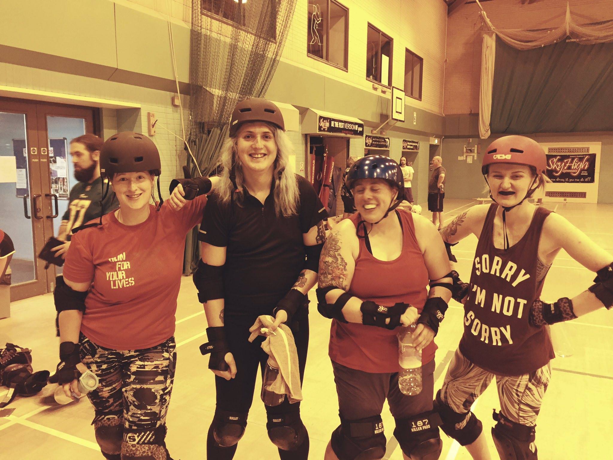 One particularly euphoric moment playing roller derby came when I finally passed my minimum skills assessment, a series of challenges that need to be completed to move up from the newbies practice sessions up to full squad practice with the main team. When a skater graduates up to main practices, they’re assigned a more experienced skater to look after and mentor them, refereed to as a big sister / little sister relationship. As someone who had many siblings growing up, but never got reliably seen in the role of a sister, there was something really uplifting and validating about rocking up to practice every week, having my big sister welcome me as lil sis and ask how i was getting on, and it was a really special relationship that meant a lot to me.