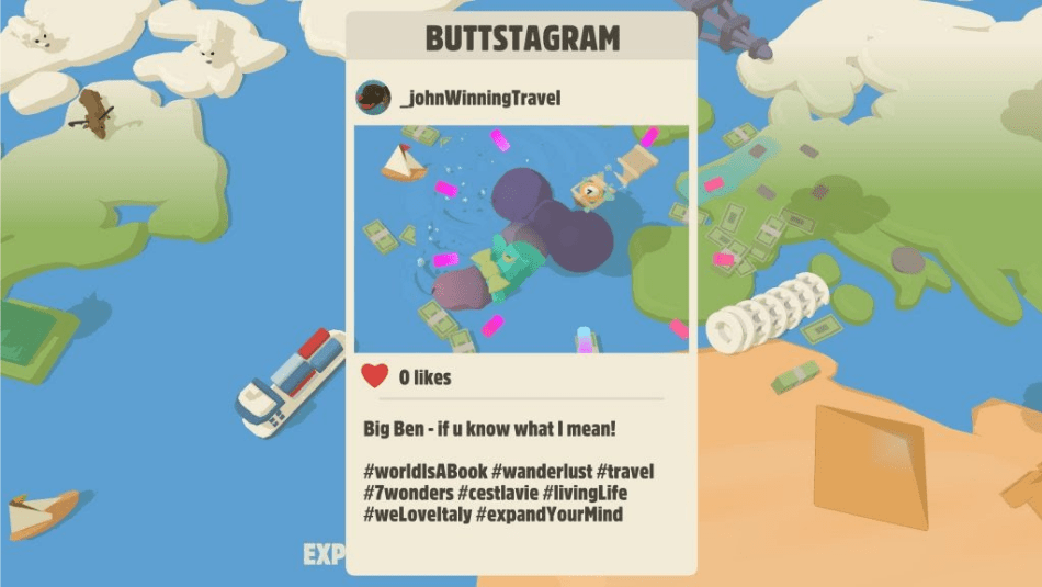 It’s not so surprising that a game built around flying wangs is secretly about toxic masculinity, but it is interesting how well the symbology ends up communicating these ideas. The world tells John he’s got to be hard, not soft, and that feelings are not manly. That’s why it matters that the story uses penises as the characters. You always have to remember that the protagonist is a dick.