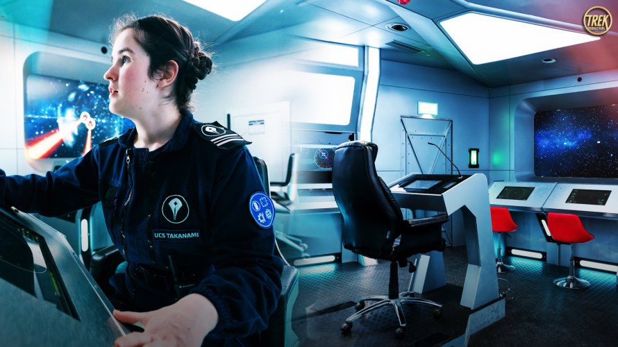Bridge Command in London is something of a mix between an escape room, a video game, a LARP event, and a piece of interactive theatre. Up to 14 people enter a building under Vauxhall station’s railway arches, get “teleported” to the Mess hall of the UCN Warspite, before teaming up to crew one of two interactive starship sets. Crews are given a briefing on one of 21 currently running missions (split between Diplomacy, Intrigue, Exploration, and Military), given a tour of the ship, assigned their roles on the crew, before engaging in between 90 minutes and 2 hours of collaborative storytelling and ship piloting adventures.